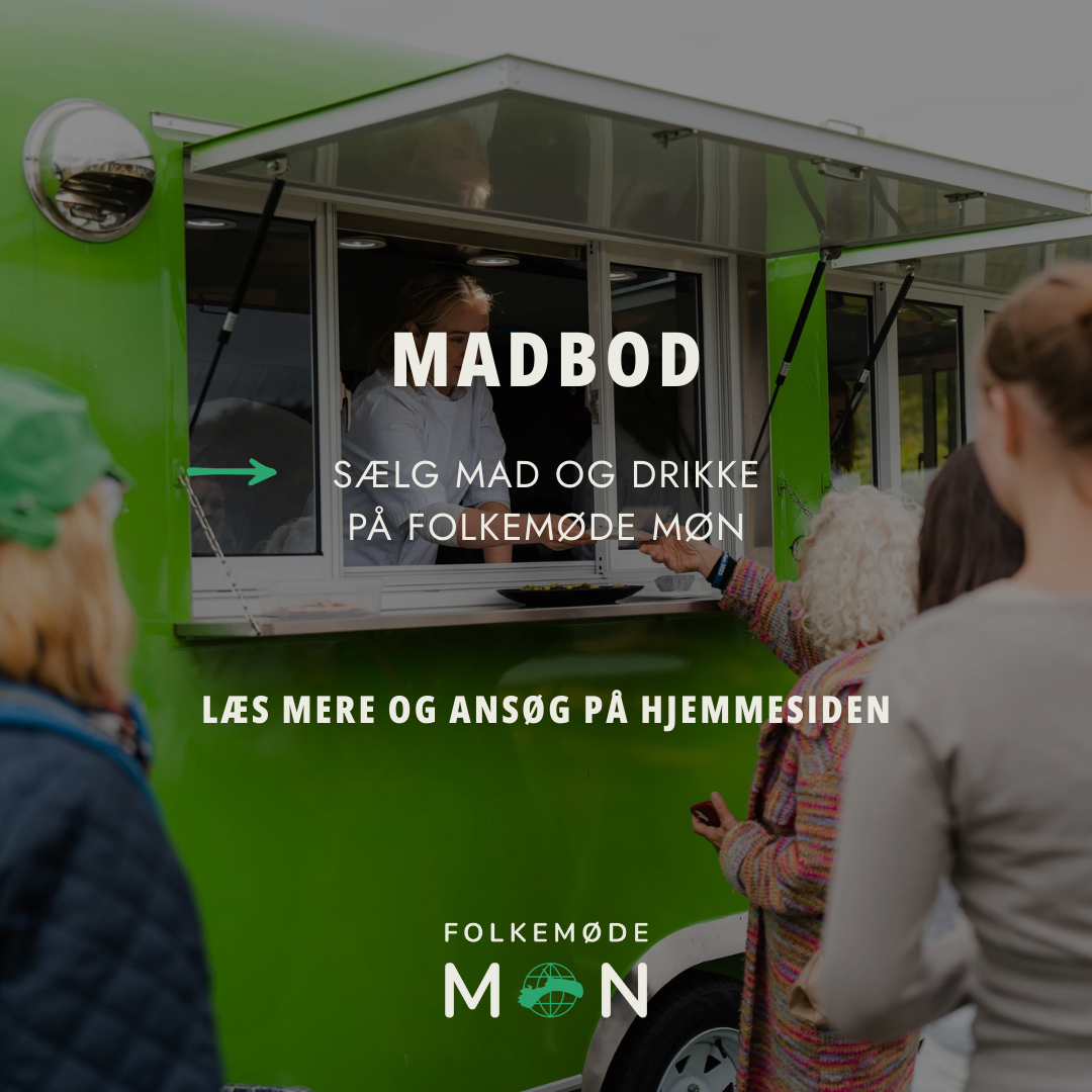 Pris for madbod: 4000 kr. (for begge dage) betales når du har ansøgt og er blevet godkendt via mail fra Folkemøde Møn. Find link til betaling HER.